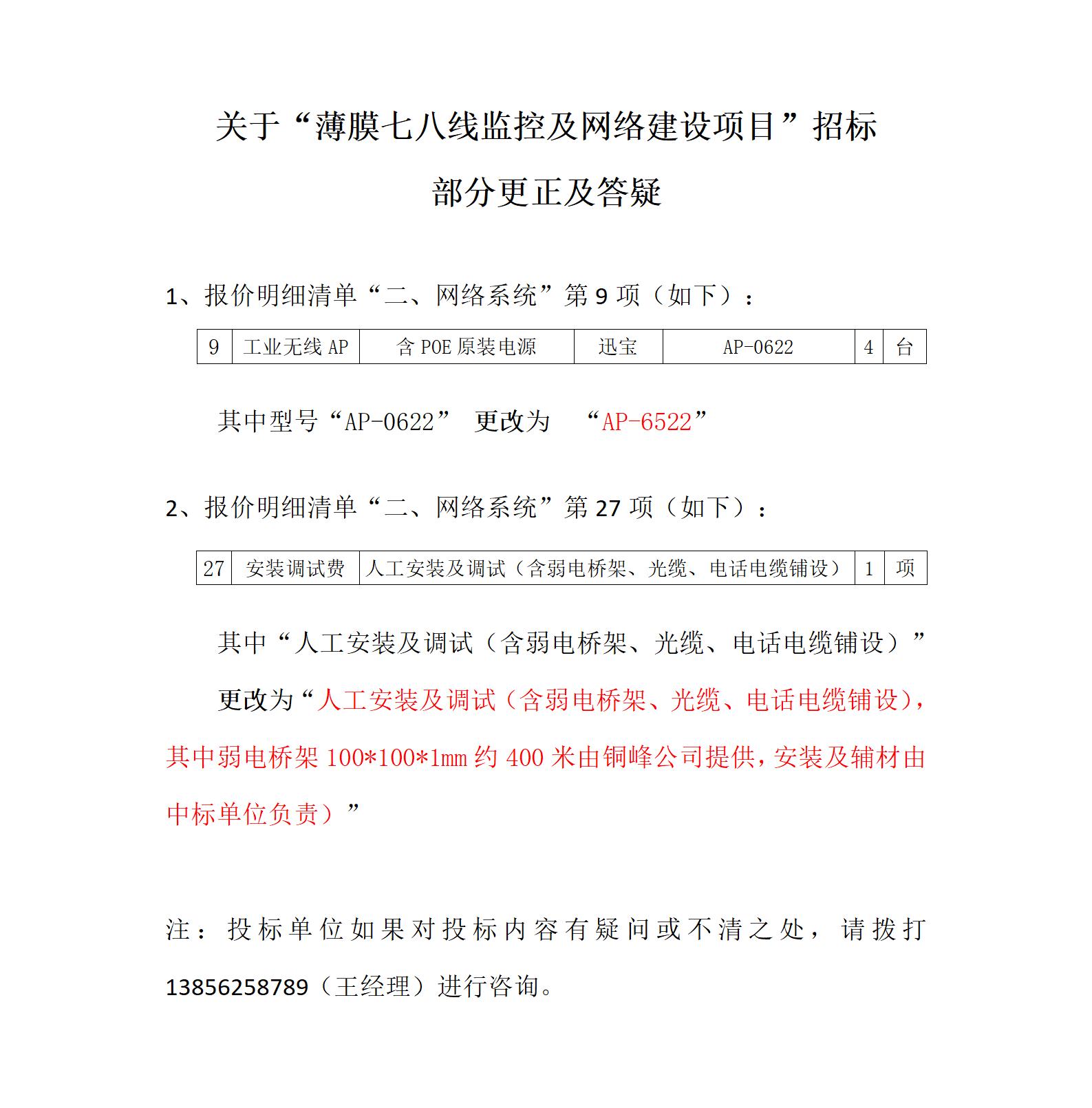 銅峰薄膜七八線監(jiān)控及網(wǎng)絡項目—招標清單更改及答疑