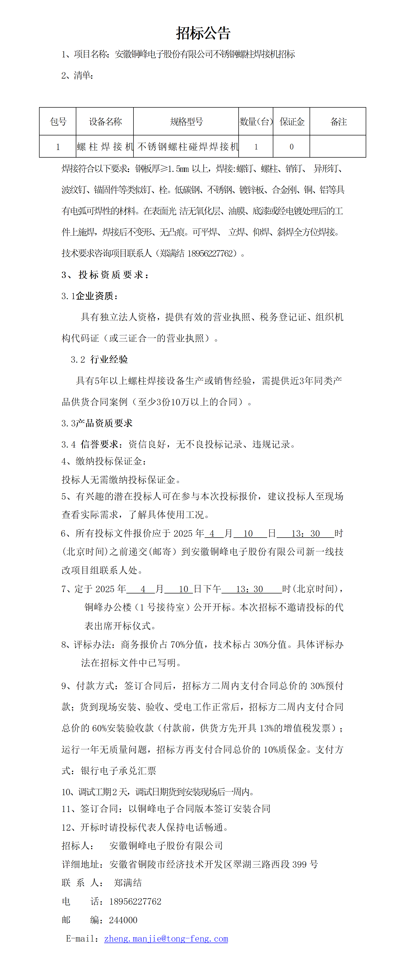 安徽銅峰電子股份有限公司新一線項目電纜招標公告_01