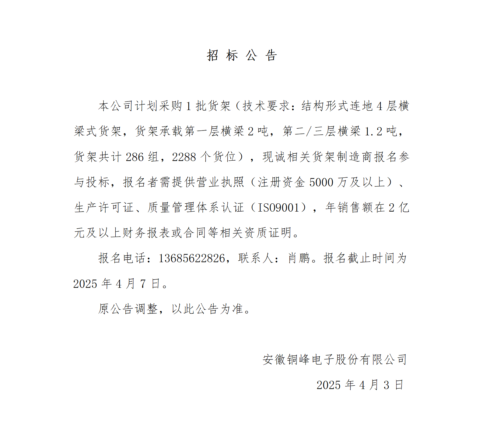 銅峰公司智能倉儲(chǔ)立體倉庫貨架采購招標(biāo)公告_01
