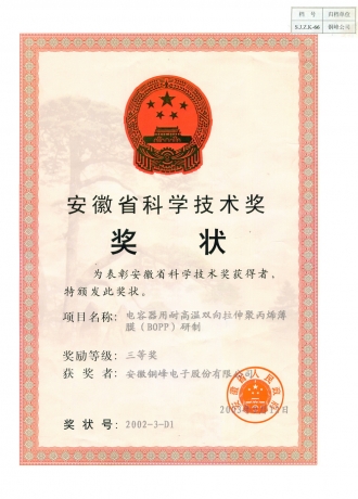 安徽省科學(xué)技術(shù)三等獎