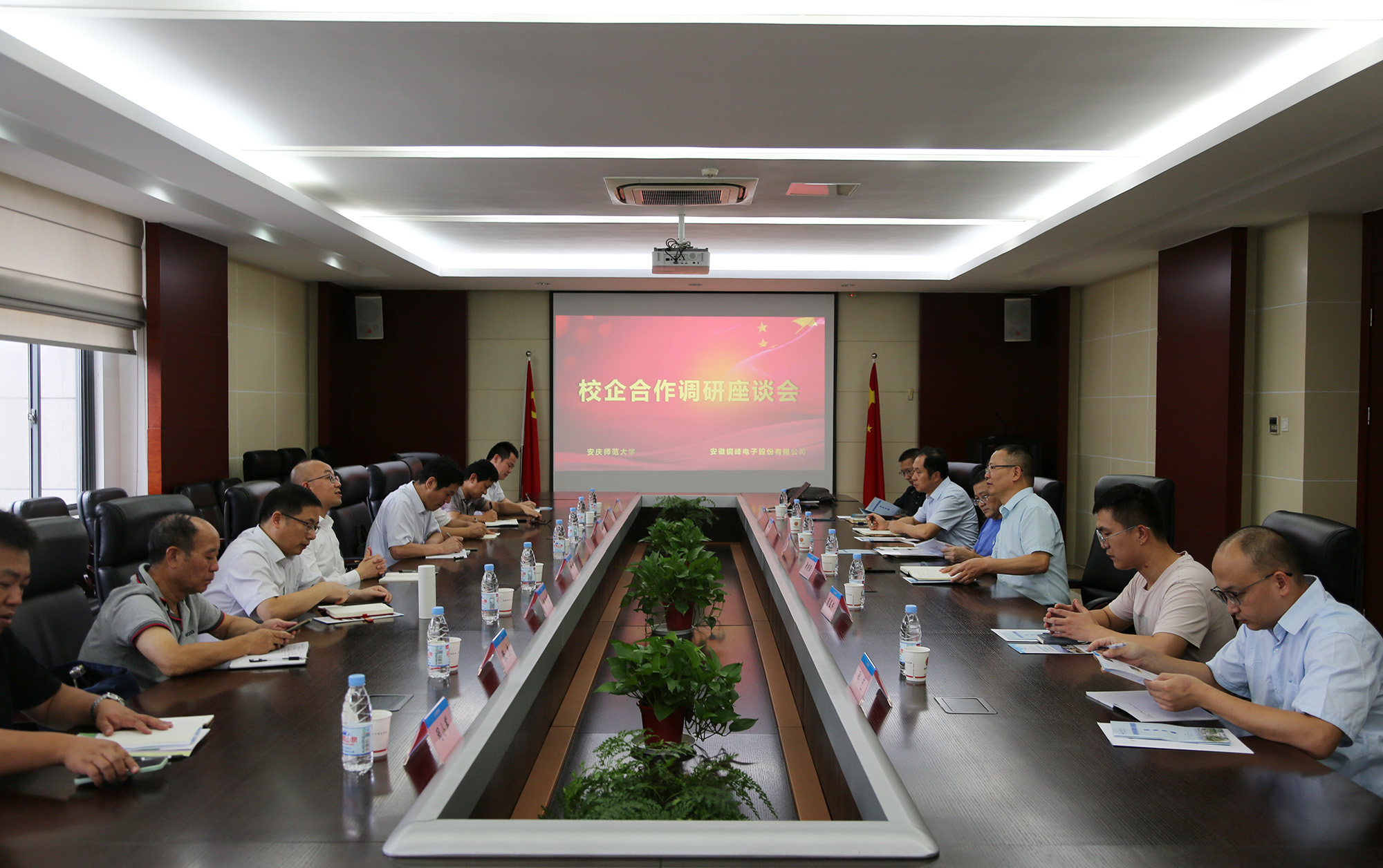 8月28日下午,安慶師范大學(xué)黨委常委、副校長肖新率隊(duì)來公司開展校企合作走訪調(diào)研,并進(jìn)行座談。公司黨委書記、董事長黃明強(qiáng),常務(wù)副總經(jīng)理、總工程師儲(chǔ)松潮,安慶師范大學(xué)研究生學(xué)院、電子工程與智能制造學(xué)院和科研處等相關(guān)職能處室負(fù)責(zé)人,公司相關(guān)職能部門負(fù)責(zé)人及校友代表陪同。