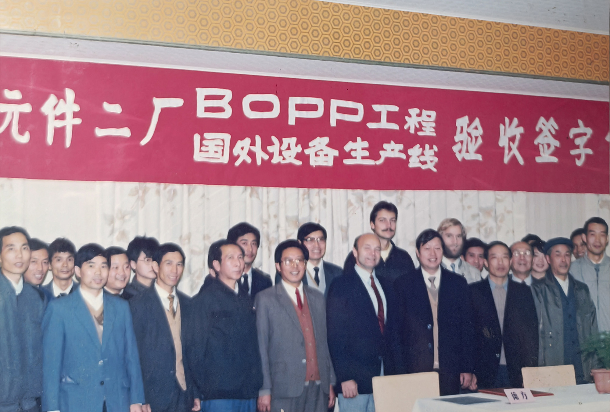 銅峰“老一線”于1989年建成投產(chǎn)。上世紀(jì)80年代,當(dāng)時國內(nèi)電容器用聚丙烯膜幾乎完全依賴進口,嚴重制約了我國電容器等相關(guān)產(chǎn)業(yè)的發(fā)展。銅峰公司前身銅陵市無線電元件二廠積極響應(yīng)國家需求,決定從國外引進雙向拉伸電容器用聚丙烯膜生產(chǎn)線。1985年項目啟動,經(jīng)過一系列籌備工作,1986年獲得國家計委批準(zhǔn)立項,并被列入國家 “七五” 機械電子工業(yè)重點技改項目。1988年,主線和相關(guān)輔助設(shè)備成功引進。經(jīng)過一年多的緊張建設(shè),1989年生產(chǎn)線正式投產(chǎn)。“老一線”的建成投產(chǎn),是銅峰發(fā)展史上具有重要意義的轉(zhuǎn)折點。該線加速了銅峰公司產(chǎn)品結(jié)構(gòu)調(diào)整和轉(zhuǎn)型步伐,并由此形成了全國唯一的“電工三膜”(電容薄膜、金屬化膜和薄膜電容器)一條龍的生產(chǎn)格局,使企業(yè)的經(jīng)濟規(guī)模和技術(shù)水平躍上一個新臺階。